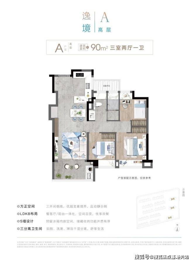 金地嘉境售楼处电话4008569058☑️☑️三房面积并不是越大越好,像这样建面约90㎡的紧凑户型,超强功能性,轻松实现低门槛上车,资产配置也能得心应手。三开间朝南,即使是建面约90㎡三房也做到了大开间,空间感更阔绰。金地嘉境售楼处电话4008569058☑️☑️
