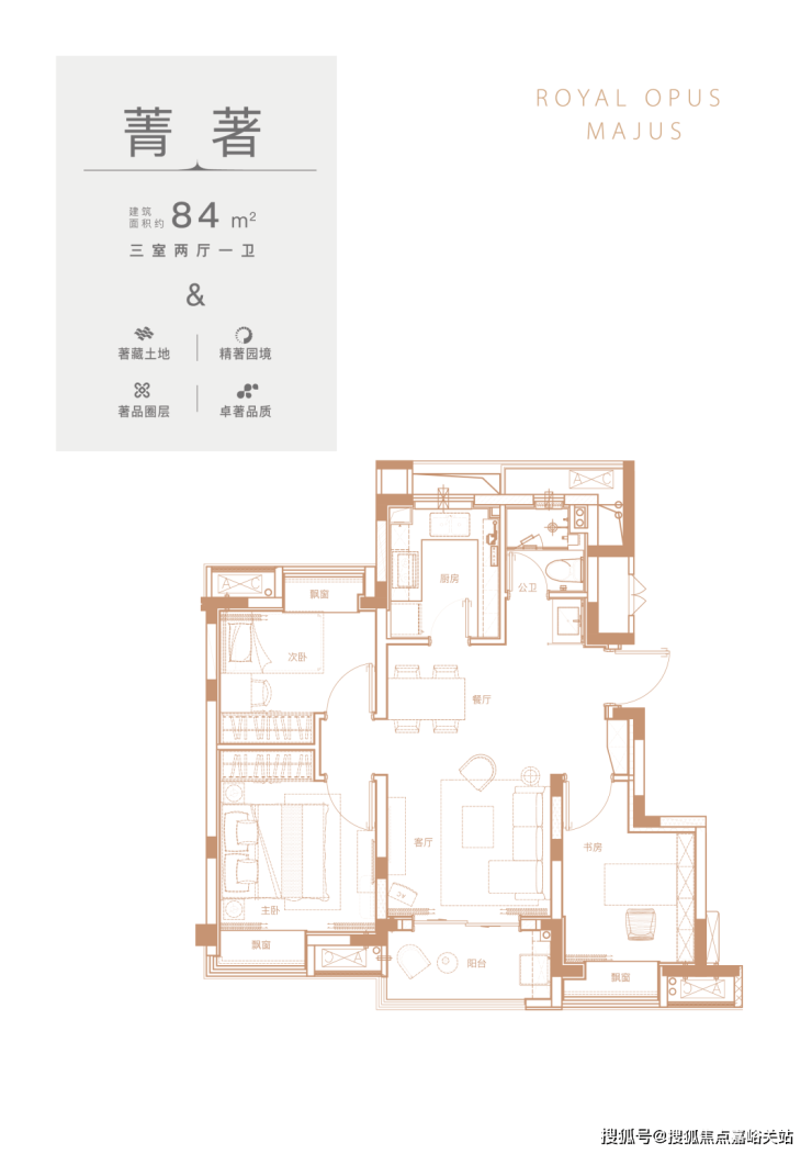 ▲全能三房,全明设计,双卫设计,通透舒适;南向三开间大面宽,更多阳光照拂,提升生活舒适感;独立书房布局,寓于静谧一角;风雅静逸,满足主人优雅品味