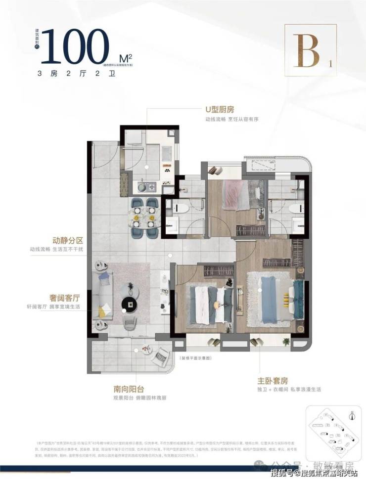 建面;B2户型100㎡ 三室两厅两卫