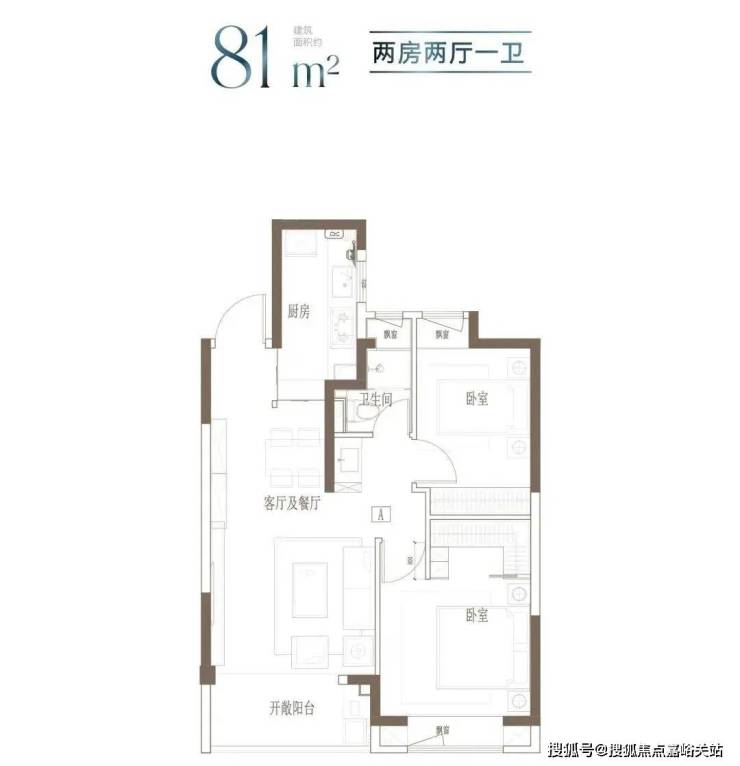 户型特点:小面积,低总价;2房朝南大面宽,舒适生活感受;卧室飘窗设计,释放更多公共空间。
