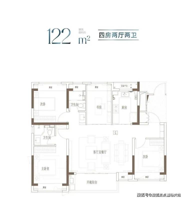 户型特点:宽境4房,拓宽空间尺度;大开间、进深短,通透采光;主卧独立卫浴,优雅随心的寝居感受。