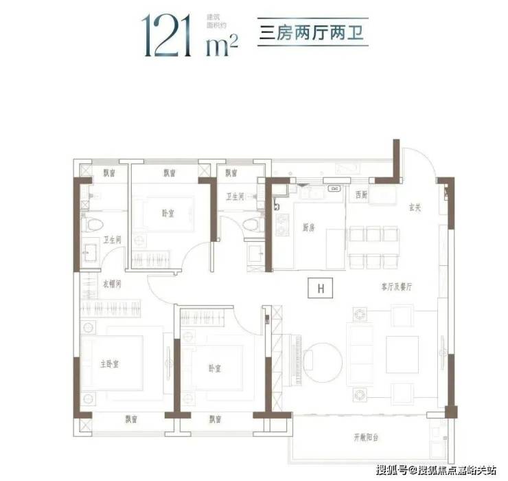 户型特点:3开间朝南,全屋阳光充足;L型厨房转角移门设计,最大化空间视野;四飘窗设计,通透空间享受;动静分区,亲密有度;套房式主卧,容纳私谧生活点滴;