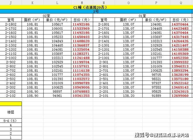 最新一房一价表: