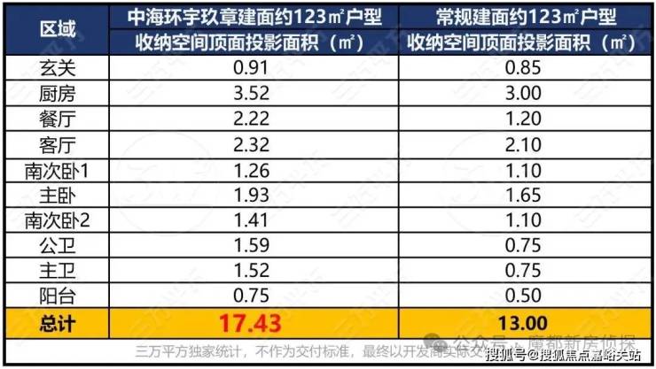 收纳方面也不用担心,除全屋伸手可及的各类收纳柜外,144㎡户型更 设置了约2.6㎡独立家政间 ,既满足日常洗烘功能,又大幅提升整体收纳容量。 全屋收纳空间投影面积约18.73㎡,比市面上同面积段其他产品,提升约23%。