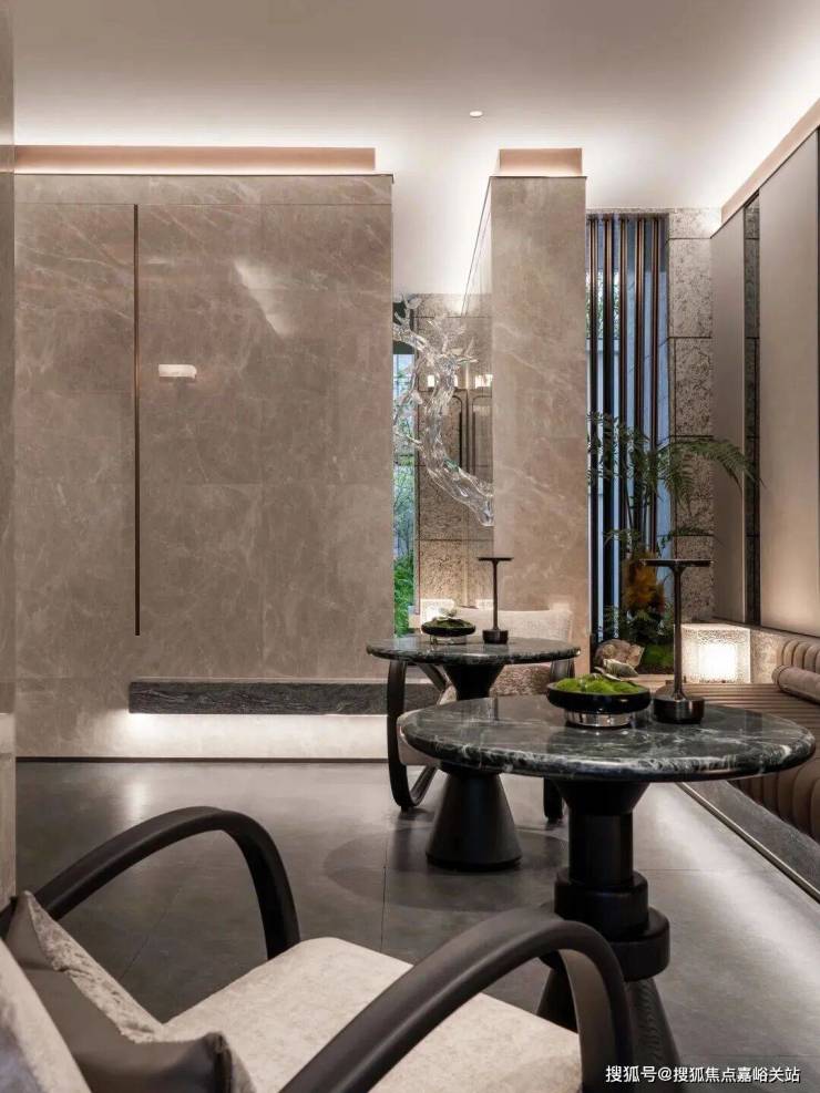 项目在奢石上的运用,不止于外立面,更延伸至社区的每一处角落。
