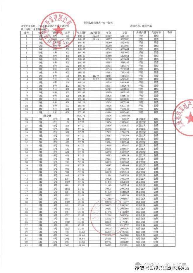 项目一房一价表