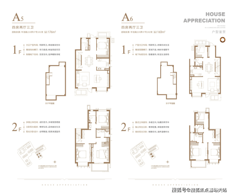 下叠户型,共有三个主力户型,建面约155、163、176㎡下叠。