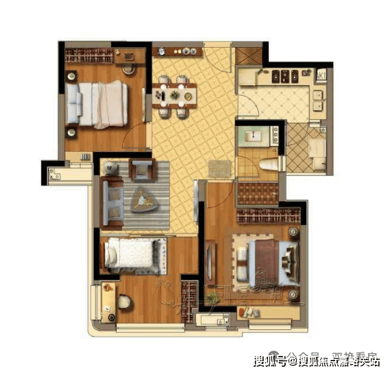 高层户型:88㎡2房2厅1卫
