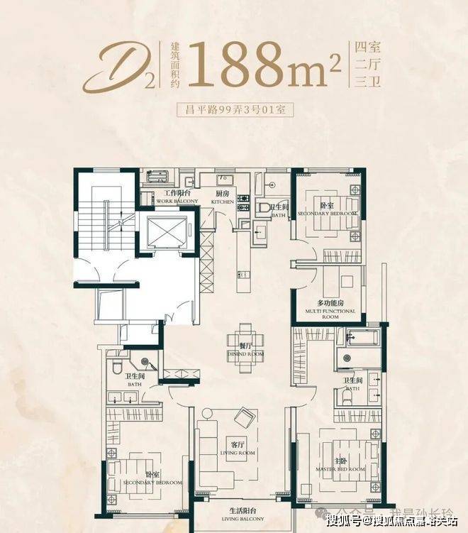 建面约 197㎡ 4 房 2 厅 3 卫:双套房设计,打造 “家庭平权” 传世大宅