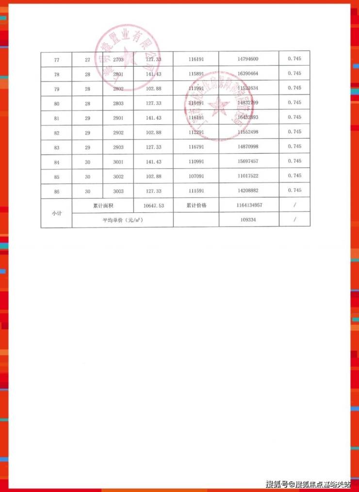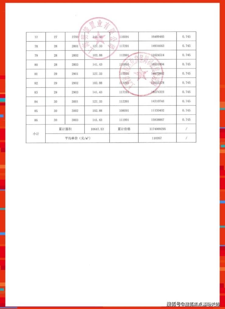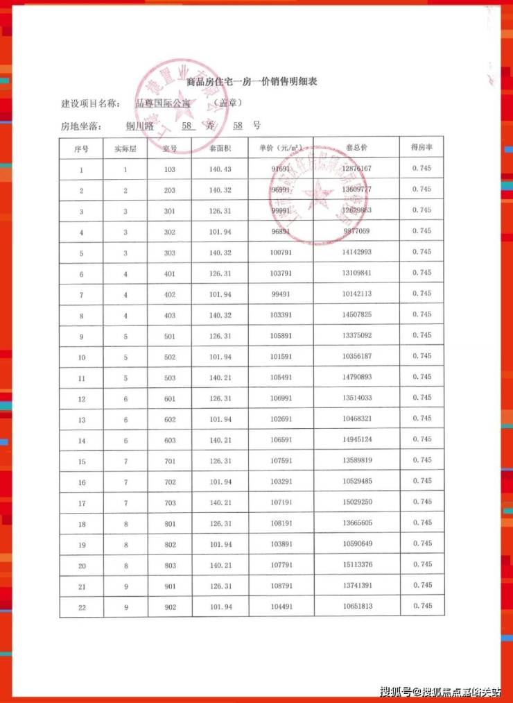一房一价表如下: