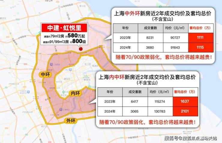 据小胖君统计,2024年中外环新房(不含宝山)套均总价达 1115万,内中环新房(不含宝山)套均总价达 2101万。