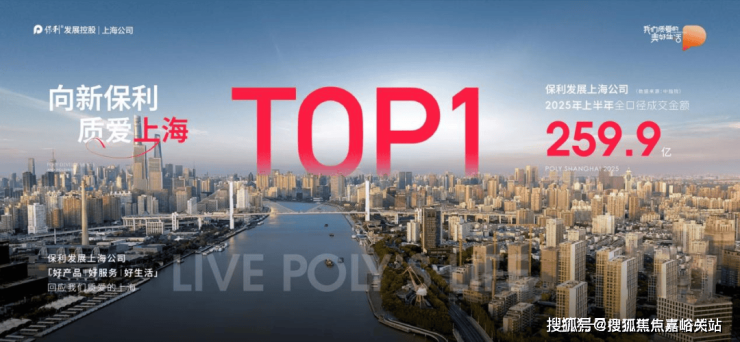 2025上半年度保利上海发展公司斩获259.9亿成交金额,冠冕上海Top1江湖地位。这份成绩单背后,是保利发展与上海的韬略共进。(数据来源:中指院)