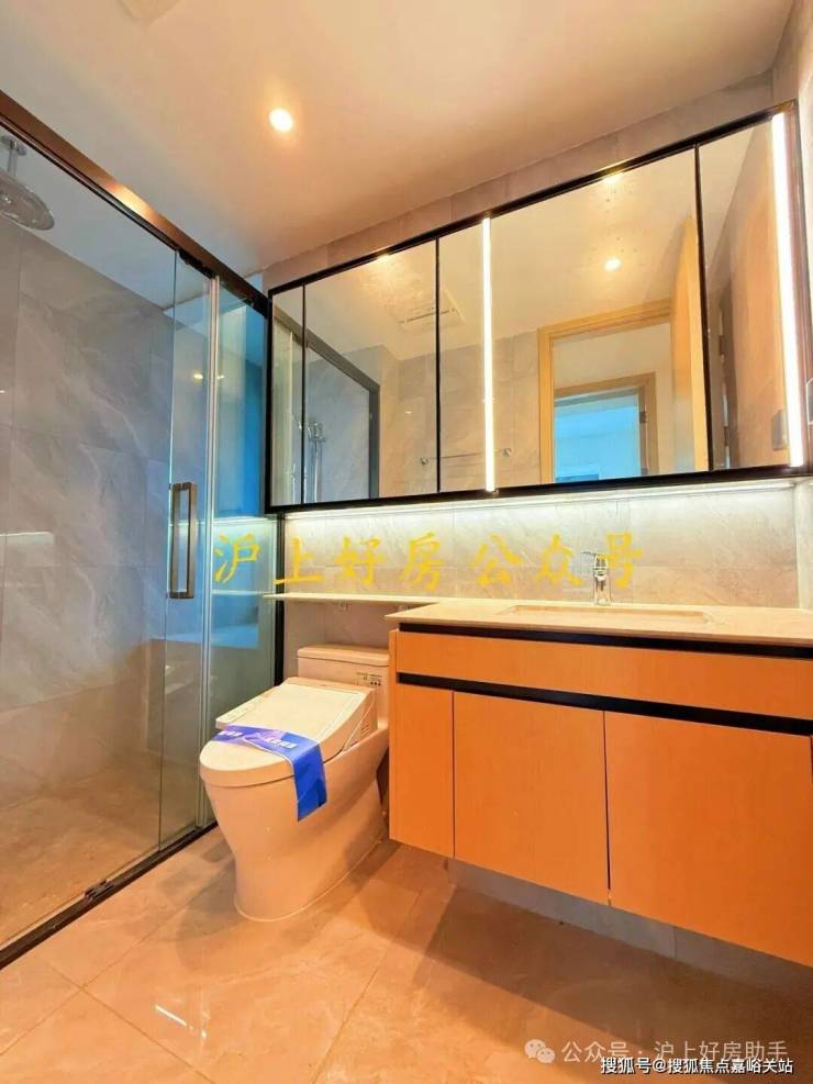 卫生间采用了TOTO智能马桶(卫洗丽)、toto台盆、高仪龙头花洒,松下暖风机,摩恩小五金,镜柜组合。