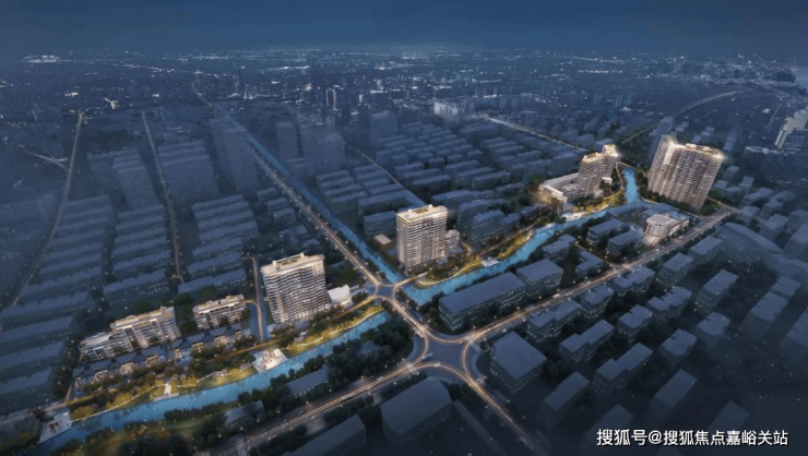 而项目整体建筑布局随河蜿蜒,高低错落的建筑形态也契合了江南水乡的水韵特色。