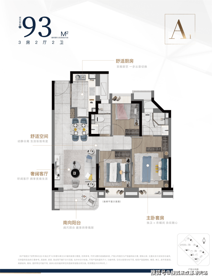 (本户型图为“世界顶科社区·玖海云天”29号楼29单元1201室的装修示意图,仅供参考,不作为要约或销售承诺。户型分布图仅为户型面积段示意,楼栋比例、位置关系与实际存在差异,仅供面积段选择示意参考。其装修、家居、陈设等不属于交付范围,也并非交付标准。不同户型的面积尺寸,功能布局,空间分割等均有不同,相同户型因楼栋、楼层、单元、房号等差别,局部结构、朝向、面积等也可能不同,具体以政府最终审定的图纸和销售合同为准。有效期至2024年2月。)