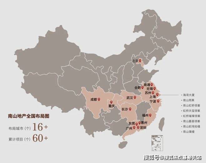 而在房地产行业中,南山地产业务版图已经涉及一线城市,珠江三角洲、长江三角洲等16座城市,累计开发项目超过60个!无论背景实力,还是开发经验,可以说都是当下房地产市场中,最为稳健可靠的T0级房企!