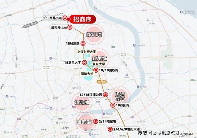 预计今年年底通车的18号线二期含金量太高了。未来从招商序所在的长江西路出发(在建)出发,2站就是新江湾,4站财大,5站复旦,6站五角场,8站新华医院,11站杨浦滨江,12站陆家嘴滨江...并且,每站之间的距离很短,所以实际的通勤效率比想象中要更高。