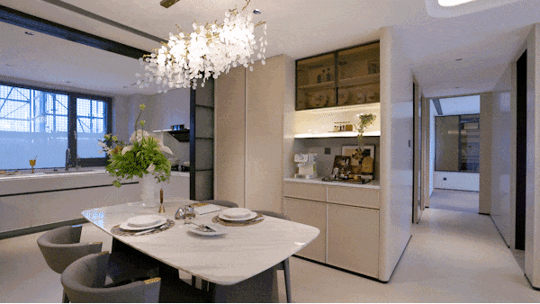 延伸出的"早C晚A"魔法空间,藏着都市人的生活仪式感:清晨,胶囊咖啡机吐出第一缕醇香,骨瓷杯沿的奶沫画出心形拉花;入夜,威士忌酒柜的柔光亮起,水晶杯折射出琥珀色的微醺时刻。