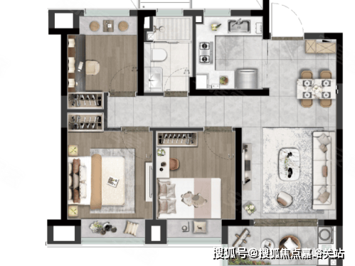 建面约 88㎡三房两厅一卫:刚需首选,小面积大格局