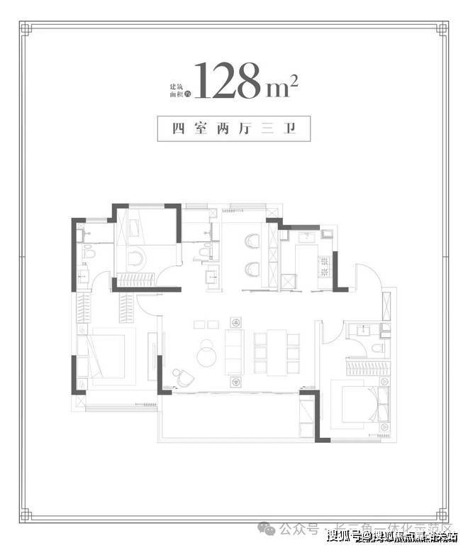 洋房户型-臻雅建筑面积约128㎡4室2厅3卫
