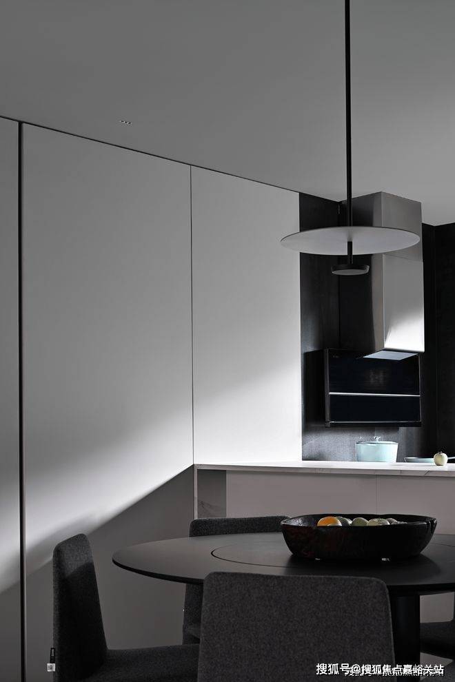 餐客厅之间彼此相通,增大了空间的可使用面积,同时也为业主提供了一个更加灵动的动线。厨房和餐厅之间依靠岛台隔断,既保证了空间光线的通透感,又保证了彼此的界限,让生活得以井然有序的展开。