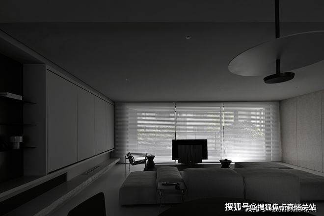 光线在百叶窗的过滤后,格外温柔,悄然点亮室内空间。夜幕降临时,此处又变幻成了一个隐私的场所。