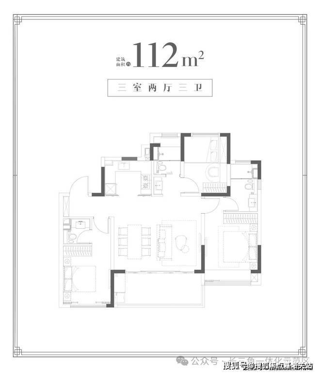 洋房户型-悦雅建筑面积约112㎡3室2厅3卫