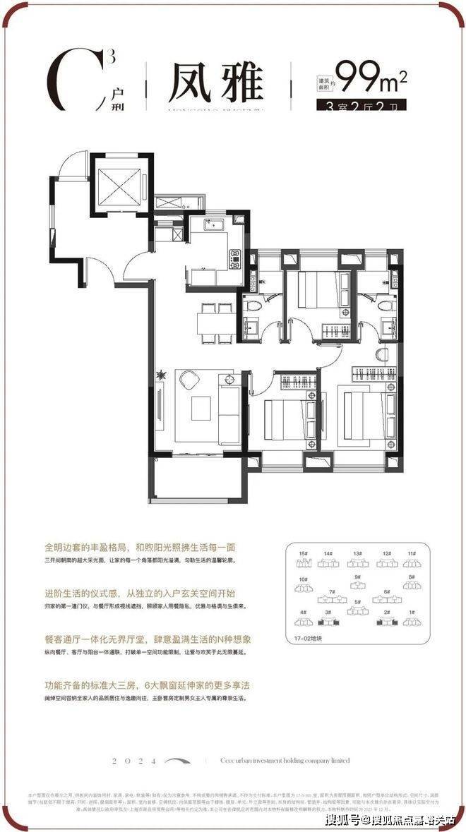 C3户型 | 建面约99㎡3房户型图▼中交凤启虹桥售楼处电话☎:400-8266-670✅✅