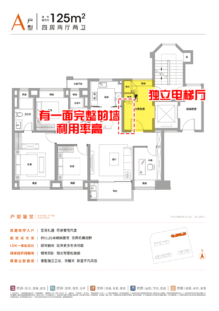 项目只有255户住宅,均是3-4房设计,奠定了项目改善社区的基本定位,也使得户均占有的景观、服务等资源都更高。