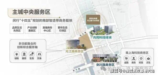 闵行主城南部单元作为上海南部科创中心核心区,与虹桥同频共振,形成南北联动发展格局,成为上海版图中心 “金钥匙”。