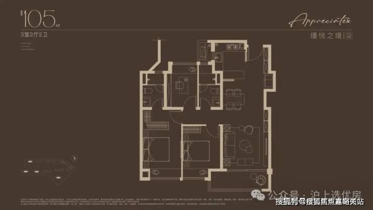 例如,建面约 105㎡的三房,三开间朝南 + 双卫,让小家庭住得宽松不局促;
