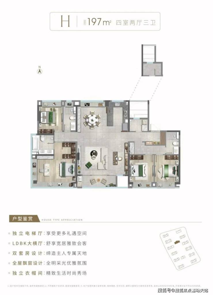 项目均价4.45万,户型面积覆盖103-197㎡的3-4房,总价在400-1000万之间。
