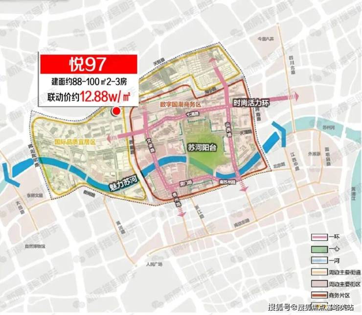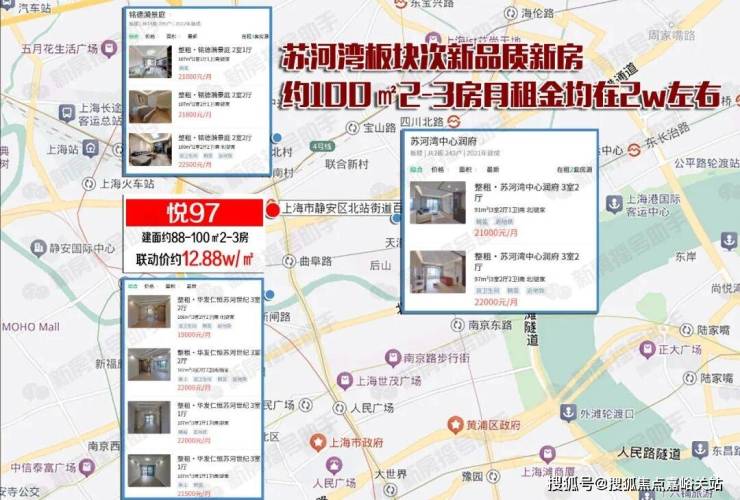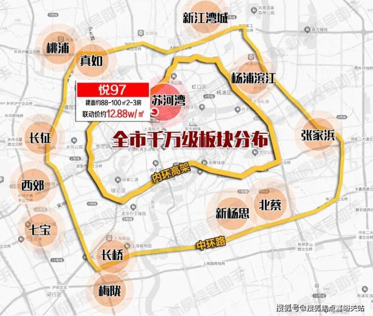 纵观整个上海新房房价格局, 总价千万级已经普遍位于中环区域,内环附近只有杨浦滨江和苏河湾, 相比之下「悦97」所在的苏河湾板块位置更核芯!