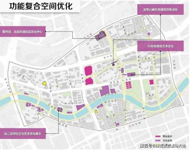 促进水岸文化与艺术提升、加强滨水腹地联动、完善生活配套服务体系, 打造创意研发、滨水居住、时尚商业混合的世界级滨水活力街区。