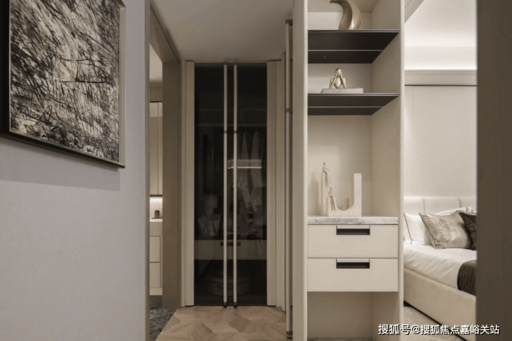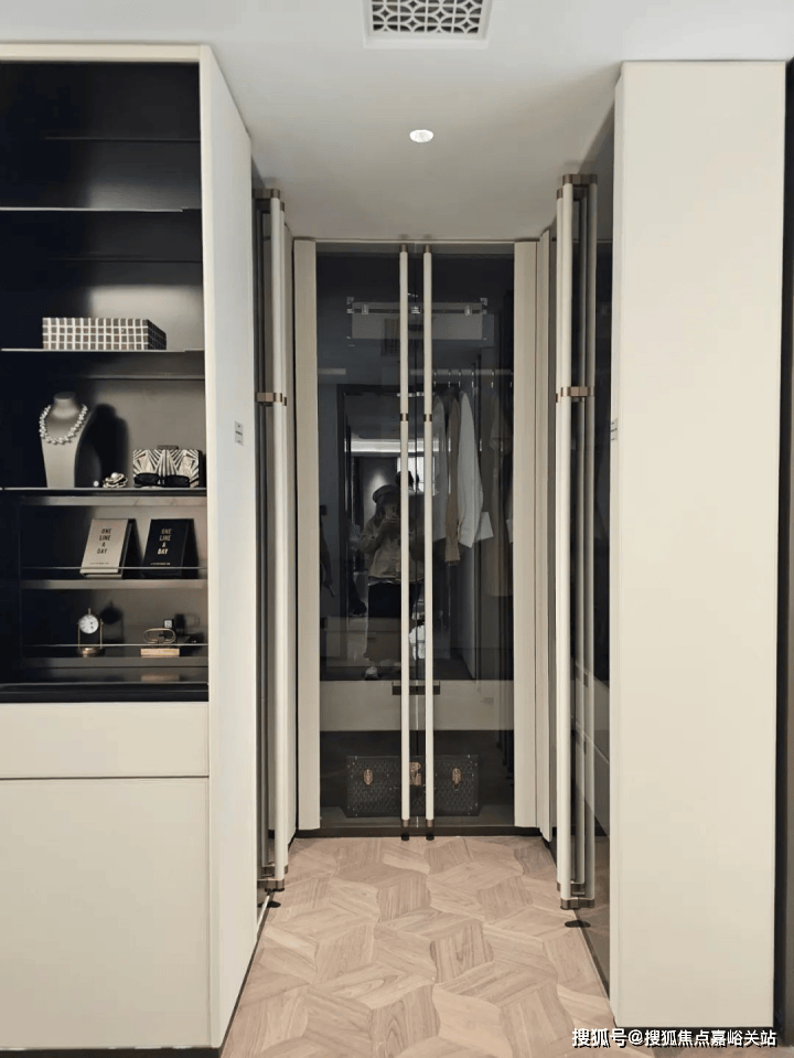 99㎡样板间中,整排到顶 玄关柜 均为交付标准且为 皮质缝线包裹! 这样的收纳空间,谁看了能不心动?