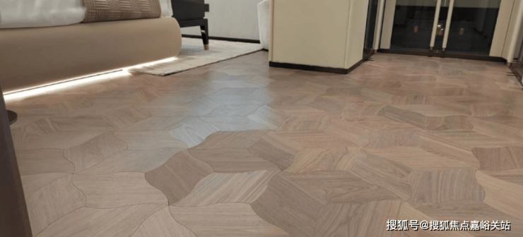 主卧地面,采用市面极少见到的 柳叶拼接, 带来了独一无二的地面效果。