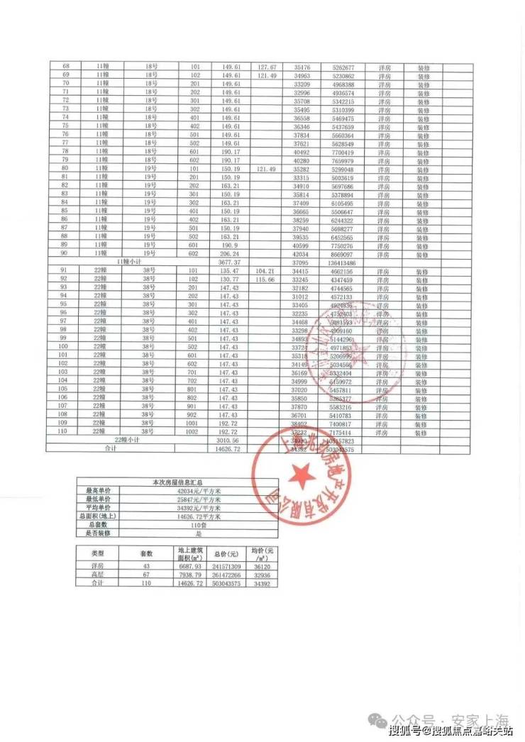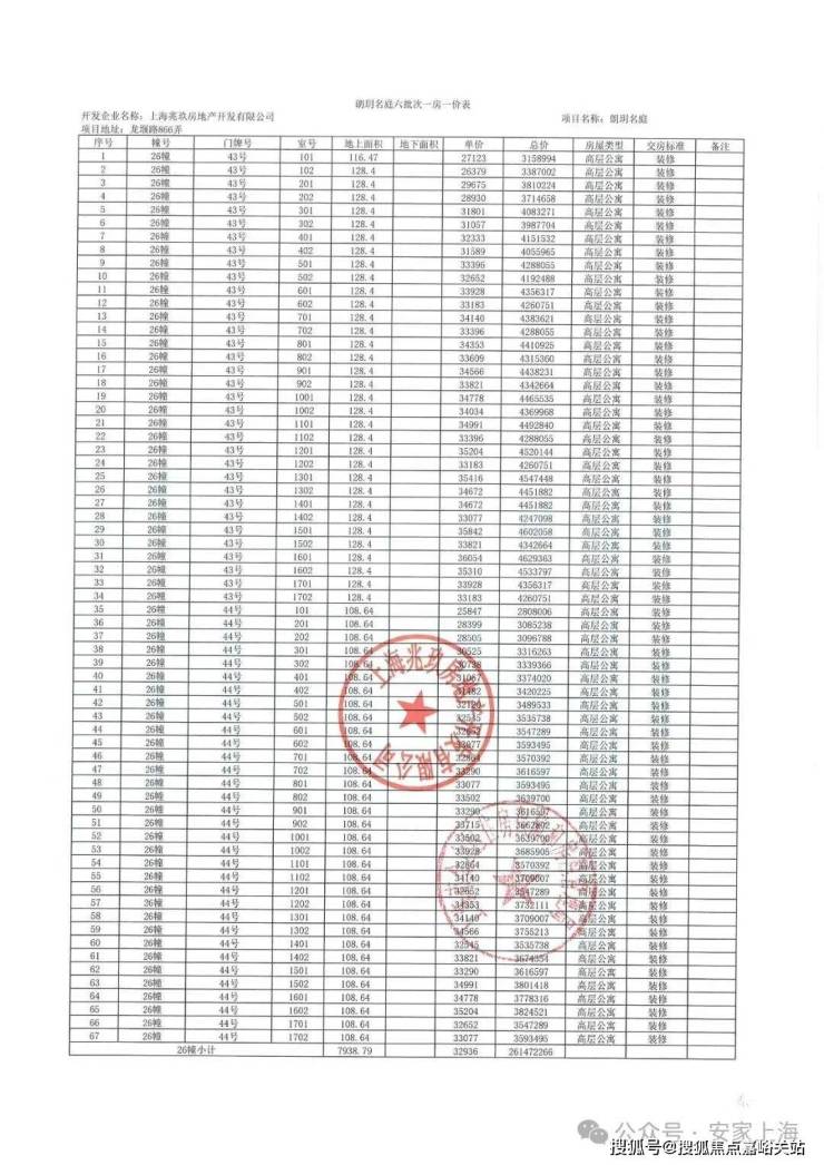 上期一房一价表: