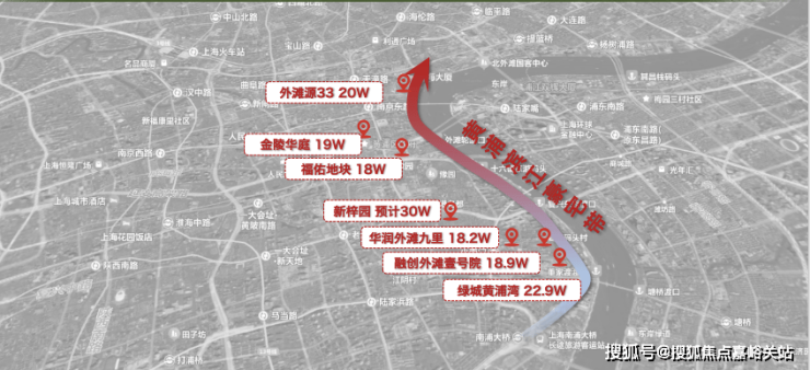 第一代滨江豪宅位于黄浦滨江之上,从中山南路-中山东二路-中山东一路,一众豪宅云集:外滩源、黄浦湾、新梓园,早已售出20万+,乃至未来预计30w的高价。