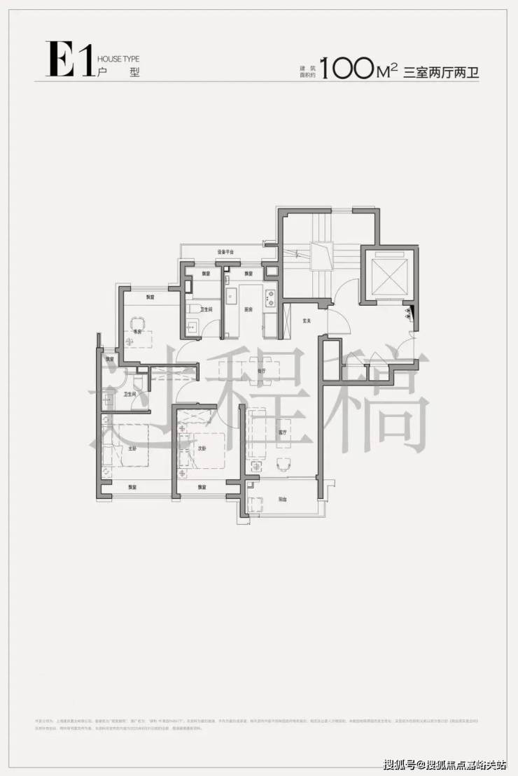 而且你仔细看,这个户型突破常规百平三房的尺度,主卧、北次卧都带270°转角飘窗。