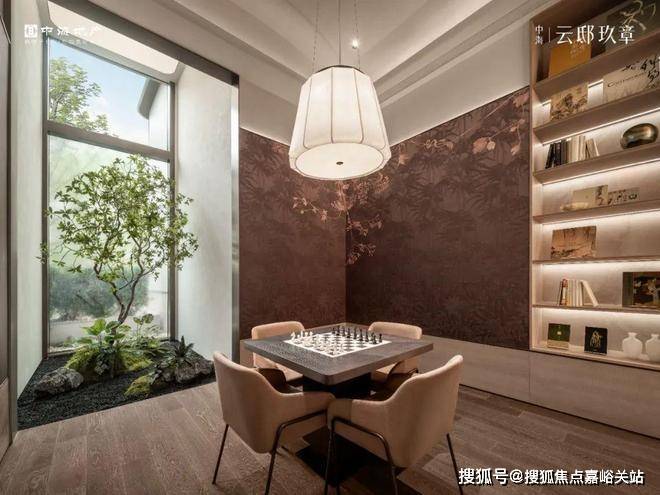 比如红酒雪茄厅,设计灵感来源于迪拜奢华酒店The Lana,颇有一种老上海风情;多功能区是一个270度水景环绕的区域,玻璃门可开可合,关上就是私密空间,打开就能亲近自然。