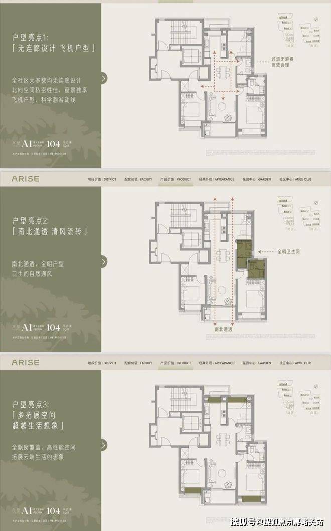 户型设计:建面约104㎡三房为“飞机户型”,148㎡四房为类一梯一户设计