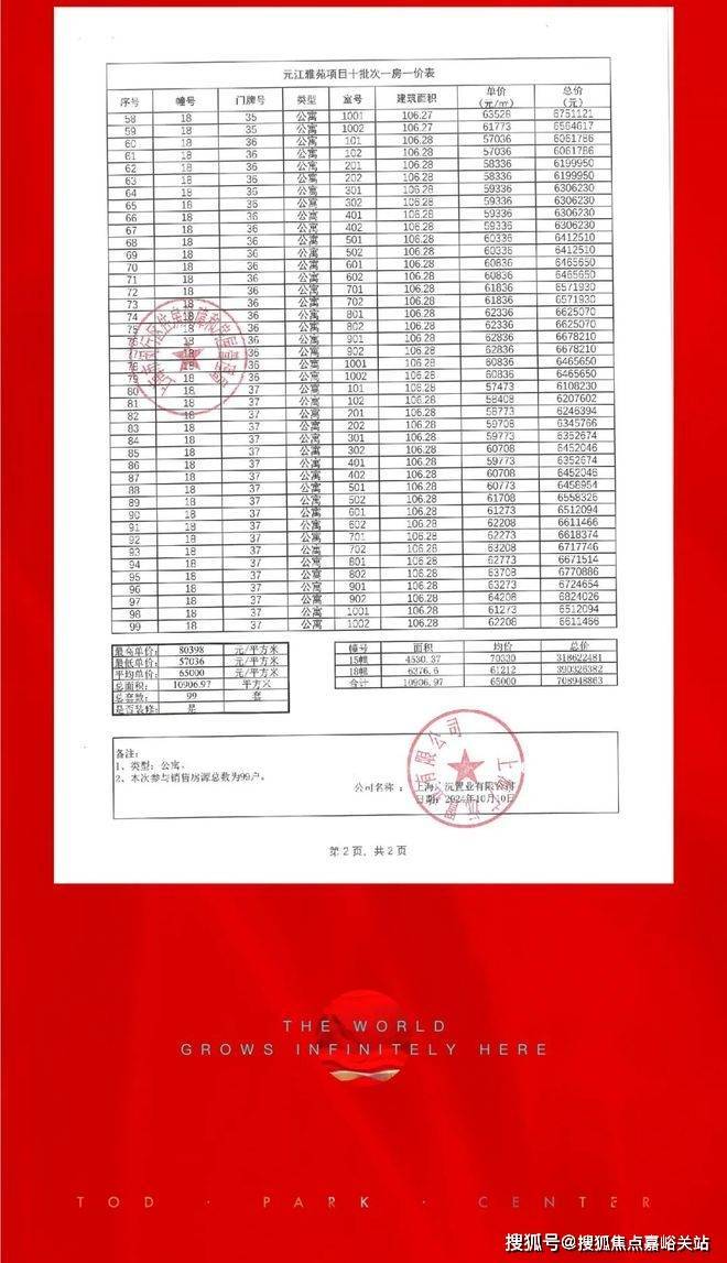 最新一房一价表: