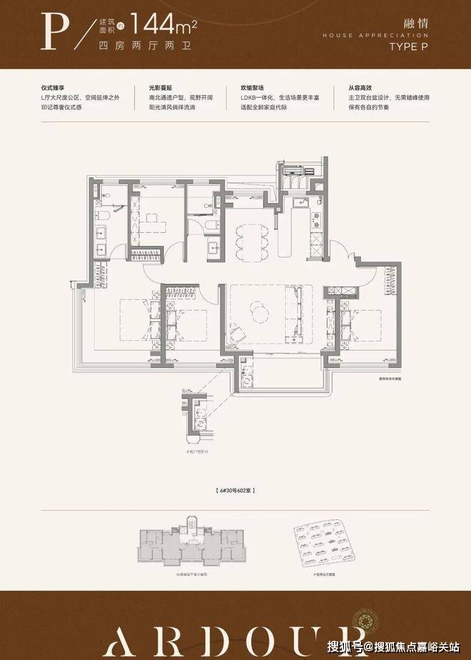 再来看下建面约144㎡4房,部分装标是有所升级的。