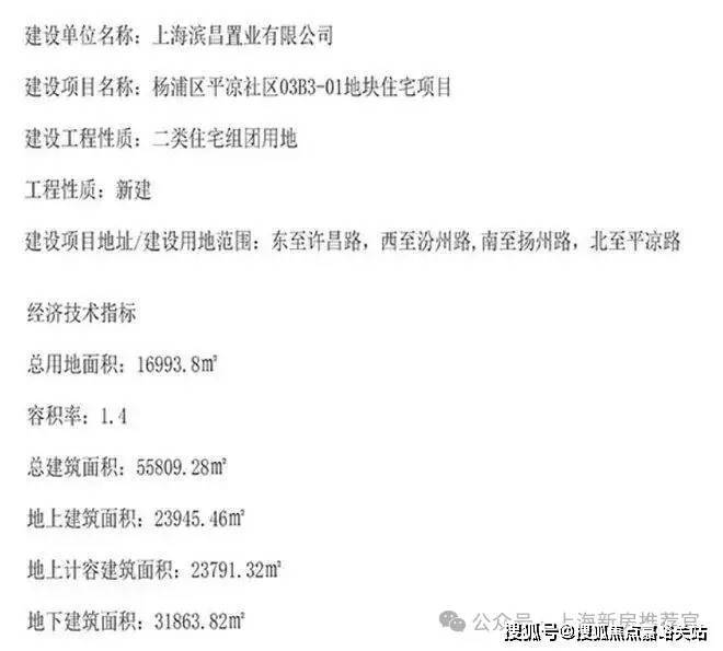 该地块坐落于杨浦区平凉社区,四至范围:地块东至许昌路,西至汾州路,南至扬州路,北至平凉路,总用地面积16993.8平,容积率1.4,地上建筑面积23945.46平,为二类住宅组团用地。
