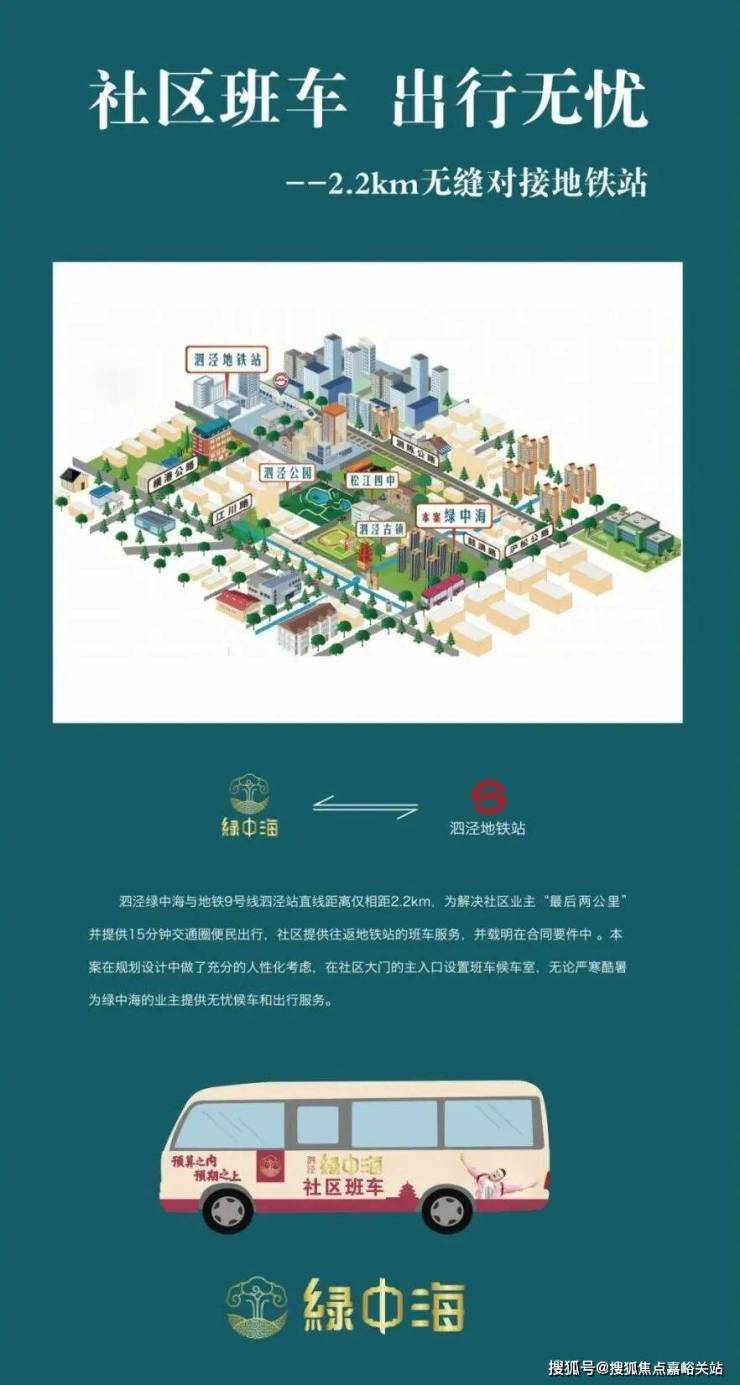 其次,泗泾拥有9号线,通过这条东西走向的烫金大动脉,泗泾绿中海将拥有3站七宝、6站漕河泾、9站徐家汇的通勤效率。而为了更好的满足业主的需求,泗泾绿中海项目配置社区班车往返地铁站。