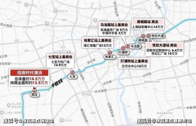 6站漕河泾 9站徐家汇9号线泗泾站新一代超级TOD自带商业,总体量约18.5万方纯商业达到了约12.5万方与地铁商场仅约200米超高配装标「招商时代潮派」