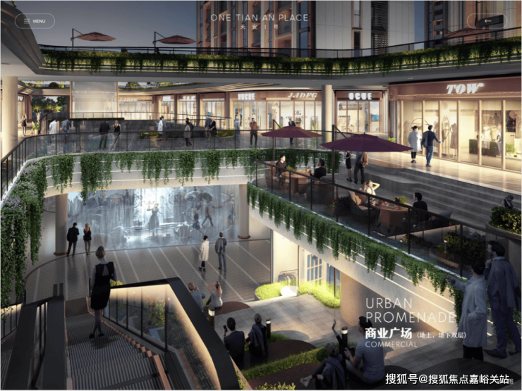 特色商街,A区地铁联通地下商业长廊,露天商业广场、体育公园,顾塘水街与高线公园、口袋公园,形成上下三层的特色活力商街。