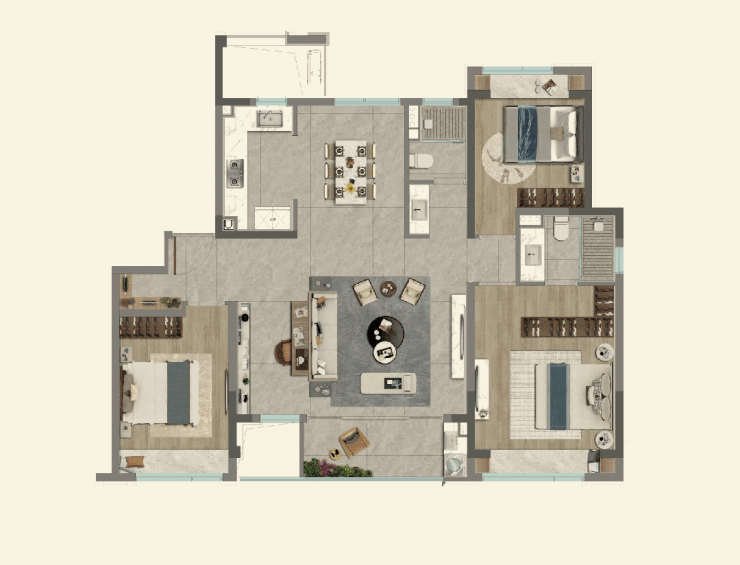 小户型另一通病,餐厅客厅一体,空间凌乱局促。在调研中,超过83%的意向业主,希望能够拥有独立就餐区域。国印东方125㎡户型,合理动线布局,实现烹饪与享用美食的无缝结合,美味转身即享,餐客分区设计,烟火与优雅互不干扰,轻松圆梦双面生活。