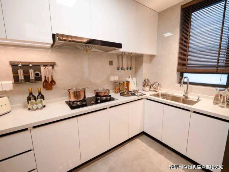 在我们调研的客户中,76%的家庭每天会花2小时在厨房中,有31%的家庭对厨房的面积期望为5平米以上,厨房家电越用越多元,传统布局难以负荷新的需求。国印东方约5.25㎡L形厨房设计,流畅操作动线,相对于传统厨房,空间利用率更高,同时也让原本狭小的厨房,更通透宽敞。