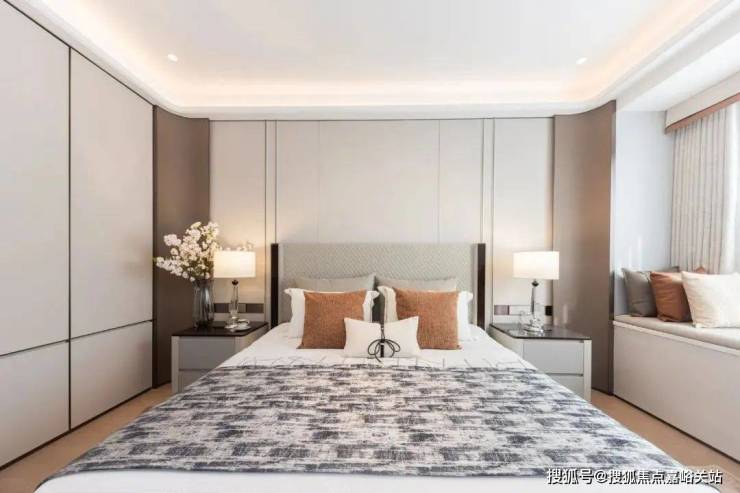 而到了卧室空间,灯光就显得更加温馨一点,更容易让人产生安全感,家的归属感拉满。